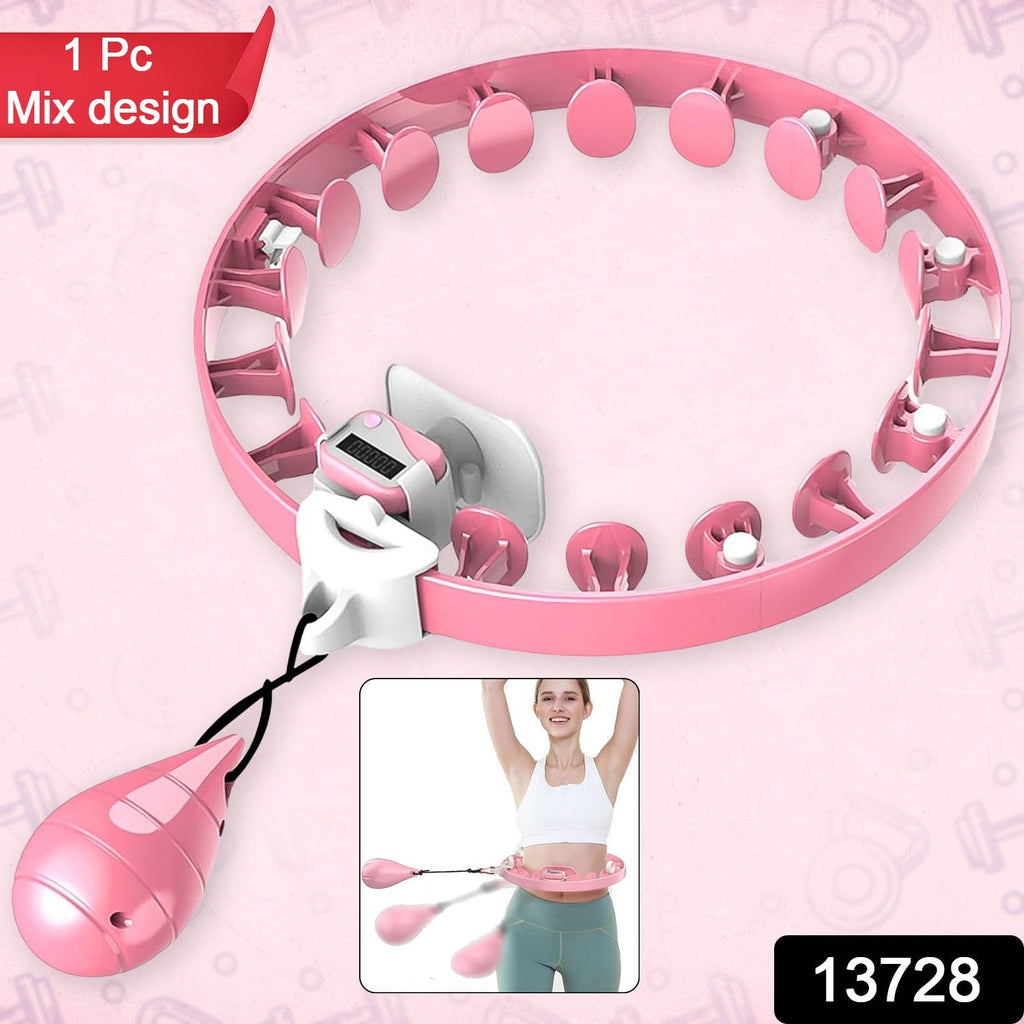 Smart Fitness Hula Hoops Non-Fall Exercise Detachable Hoola-Hoop with Ball and Intelligent Counter, Size Adjustable Freely, Suitable for Adults Weight Loss Fitness Exercise (1 Pc / Mix Design /  Loose)