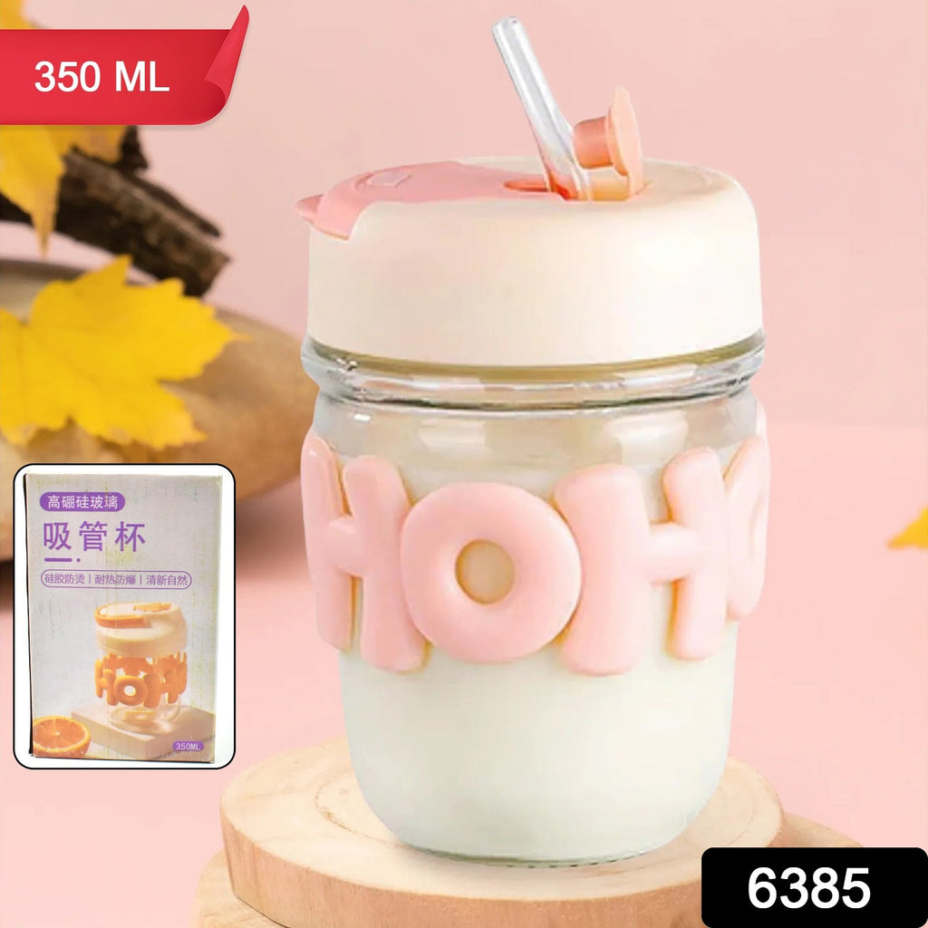 6385 Printed Coffee Cup with Lid and Glass Cup for Tea and Coffee Mug, Set of 1, Glass Cappuccinos Cup, Espresso Cup, Big Juice Milk Cup, Tea Mug, portable alphabet water cups, high-value coffee cups 350 Ml