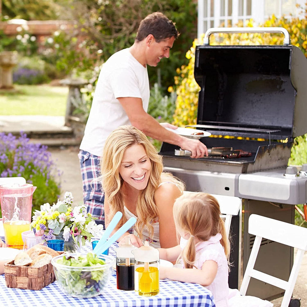 • 【Material Safety & Robustness】: Non-Drip spout leakproof condiment container with silicone brush is made of food-grade ABS and AS, BPA free. The bottle body is made of high temperature resistant high borosilicate glass, resistant to instantaneous extreme temperature difference (-20℃-150℃), and has ultra-high stability, it will not dilute harmful substances, so it can be used for any use such as soy sauce, rapeseed oil liquid, etc.