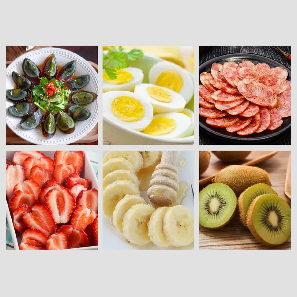 • 3-in-1 Slicer The slicer can easily cut evenly into three various shapes, and rape cutter also suitable for cutting soft foods or fruits, such as strawberry, banana, mushroom, etc.