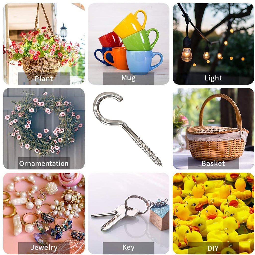 Eye Hooks Screw in Heavy Duty, Stainless Steel Eye Bolts Screw, Anti-Rust Self Tapping Eye Lag Screws Eyelet Screw for Wood, Securing Cables Wires (7 Pc Set)